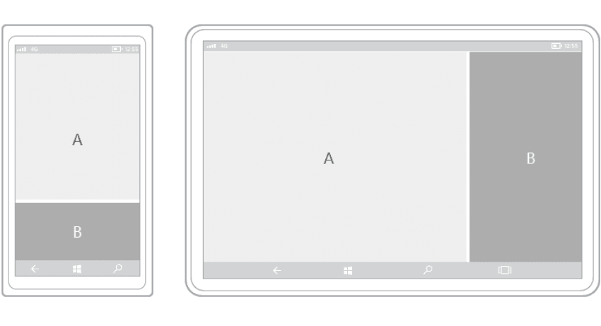 Najprostszy przykład – mając dwukolumnowy layout „lewo-prawo”, przy zwężeniu szerokości aplikacji poniżej pewnego progu, rozmieszczenie elementów zmieni się na „góra-dół”. Lewa kolumna będzie na przykład na górze, a prawa na dole. Mało tego, poniżej pewnych szerokości możemy na przykład zdecydować, że pewne panele (elementy interfejsu) nie będą się wyświetlać w ogóle. I wszystko to bez konieczności pisania ani jednej linii kodu w C#. Wszystko załatwi markup w XAMLU, bez potrzeby ręcznego obkodowywania triggerów, które uruchamiałyby się wraz ze zmianami szerokości aplikacji/ekranu. Dzięki temu można tworzyć dynamiczne interfejsy, które dostosowują się do szerokości ekranu.
